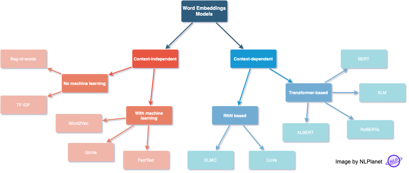 아래 그림 역시 그런 관점으로 분류된 대표적인 Word Embedding Model들을 나타낸다.